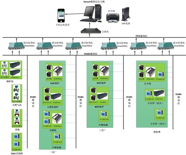 系统根据具体的工程情况来组网,采用分层分布式结构。