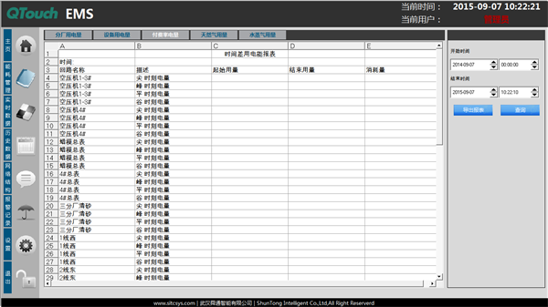 3)用能统计表,通过数据采集,建立起分类分项用能表,便于用户查询任一时间段的用能数据。