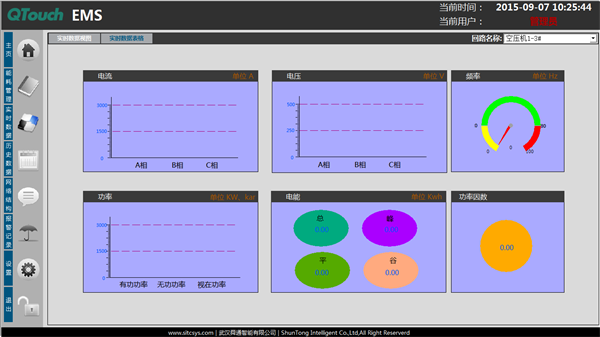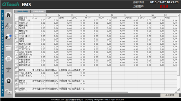 5)实时数据展示,通过实时表格展示实时用能数据,详细全面的展示数据实时值。