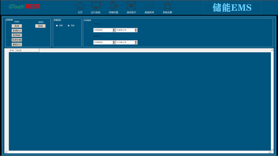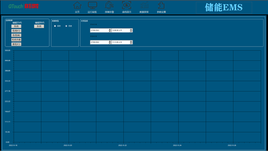 该部分实现 EMS和 BMS 数据曲线查询功能。显示区域主要包含四个部分分别为已选择数据、数据类型、时间选择以及数据显示区域。
