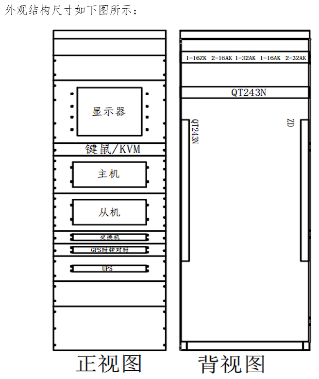 系统内置一台17寸显示器,以及一台工业级数据交换机,显示器通过QTouch图形界面显示系统一次接线图及系统参数信息,便于用户实时查看监控系统,工业交换机用于对接调度数据网和厂站数据网。